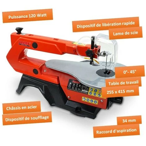 Hecht 8916 Scie à chantourner électrique puissant 120W inclinaison 50HZ vittesse 400 – 1650 oscillations/min variable