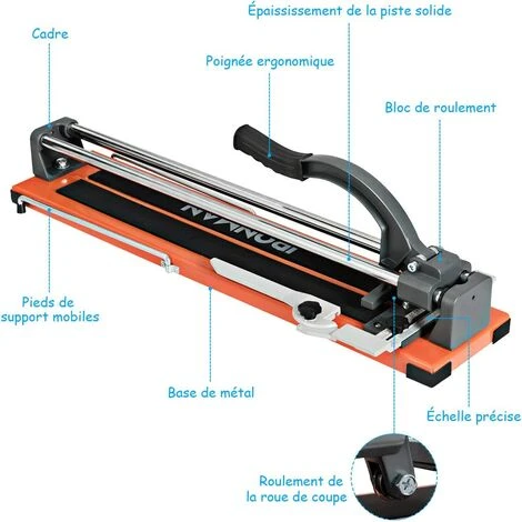【Coupe lisse et précise】La molette de coupe en carbure de tungstène plaqué titane rend la coupe douce et durable. Le système de chariot avec roulement assure un glissement parfait. De plus, il est équipé d’une échelle amovible qui permet des coupes parallèles et inclinées (0 ° -60 °) pour une coupe de précision.