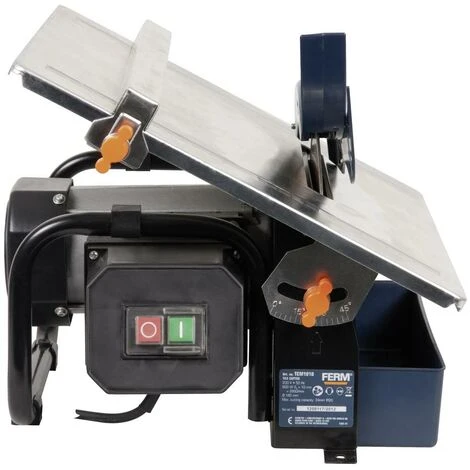 Ce coupe-carrelage 600 W de FERM est particulièrement adapté pour la coupe de carrelage dans la salle de bain ou la cuisine. Coupe-carrelage précis Ce coupe-carrelage Ferm dispose d’un puissant moteur à induction de 600 watts. Le plan de travail rabattable permet de régler l’angle de coupe de 0 à 45°. Le guide parallèle et à onglets facilite un sciage précis. Une lame de scie diamantée est fournie avec la machine, pour permettre une utilisation immédiate de l’appareil. Confort d’utilisation La machine est équipée d’un réservoir d’eau afin d’éviter l’émission de poussière au cours du travail. La lame de scie est également refroidie, elle bénéficie ainsi d’une plus longue durée de vie. L’interrupteur de sécurité, les bouchons d’oreilles fournis et les lunettes de protection garantissent un environnement de travail sécurisé.