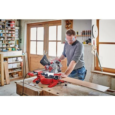 Avec la scie à onglet radiale Einhell TC-SM 216, le bricoleur expérimenté est parfaitement équipé pour réaliser des travaux de sciage et de coupe en angle à la maison, à l’atelier comme au garage. La lame (Ø 216 extérieur x ø 30 intérieur) est entraînée par un moteur puissant de 1 600 W (S6|25 %), pour un travail facile des pièces.