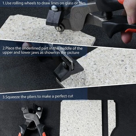 Conception : les clips et les roues facilitent la coupe du verre. (Notez que les roues peuvent patiner). La conception à ressort réduit la fatigue musculaire, ce qui rend l’utilisation d’une seule main plus facile et moins laborieuse.