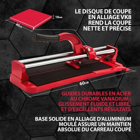 Le coupe carreaux MTX est conçu pour la découpe de carreaux de céramique, carrelage, etc. Il est efficace avec des carreaux allant jusqu’à 14 mm d’épaisseur et d’une longueur de 400 mm à 600 mm.