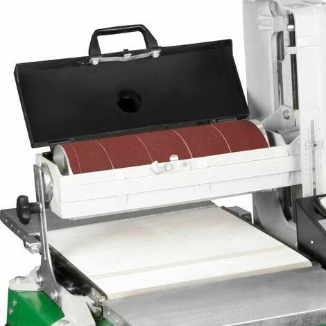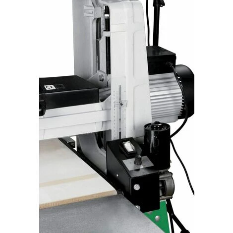Avantages : Excellentes performances, même avec des pièces larges et longues Vitesse variable réglable de 0,5 à 3 m/min pour un ponçage optimal Buse d’aspiration pour système d’aspiration externe Réglage facile de la hauteur avec volant et échelle graduée Poignée et roues pour faciliter le transport Changement rapide et facile de la bande Convient pour : Le bricoleur exigeantdisposant d’un espace limité Le travail du bois massif et des panneaux Remarque :Livrée de série sans bandes abrasives sur rouleau, n’oubliez pas de les commander.
