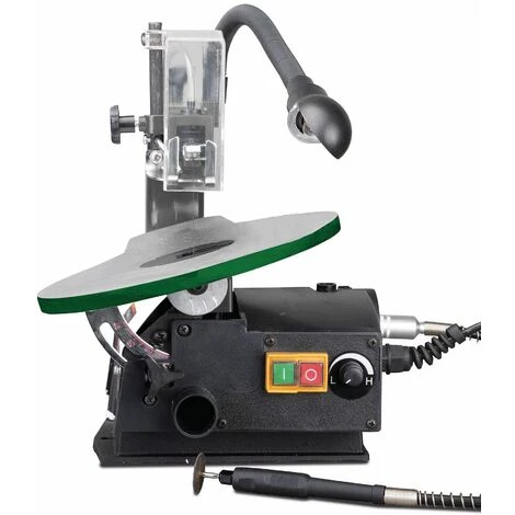 Avantages: Grand col de cygne pour pièces profondes Vitesse de la lame variable, de 550 – 1600 tpm Un ventilateur intégré élimine les copeaux de la table pendant le sciage Protection des yeux en plexiglas Système universel de fixation de la lame Table de travail orientable de90° / +45° Châssis et table en fonte Avecéclairage LED flexible Convient pour : Travaux de bricolage et modélisme Sciage de bois, plastique, plexiglas, plâtre ou métaux fins Conseil:Livrée sans lames de découpe, n’oubliez pas de les commander.