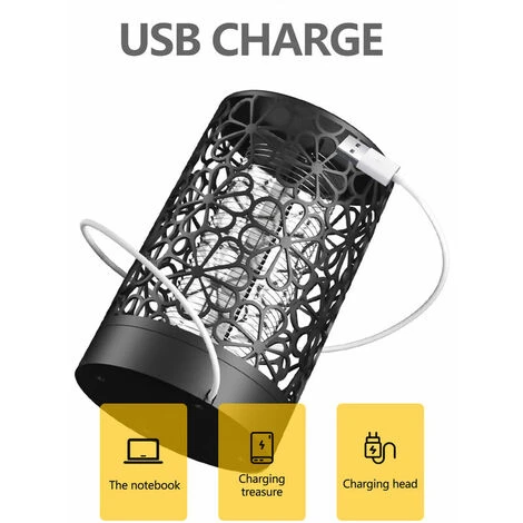Zapper de bogue de charge USB à usage domestique, longue durée de travail avec une faible consommation, faible voix de travail, ondes lumineuses violettes bioniques, l’éclairage à 360 ° améliore l’efficacité du piégeage, la couverture du filet de grille de sécurité, empêche les chocs électriques accidentels, pratique délicate.