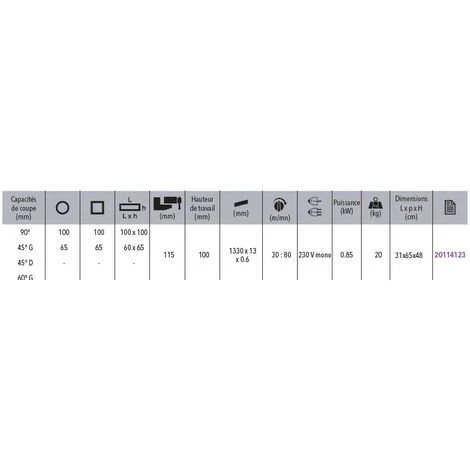 - Capacité de coupes à 90° en rectangle: 100 x 100 mm