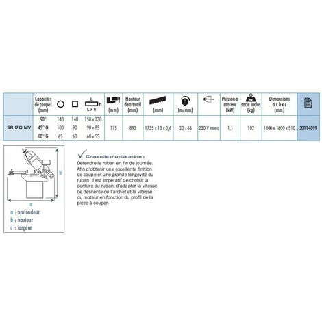 Les avantages de la Scie à ruban Sidamo SR170MV sont :