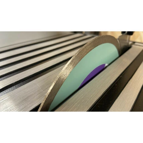 – Plan inclinable permettant les coupes à angle droit et en biseau (22,5° et 45°) Bac à eau pour le refroidissement du disque