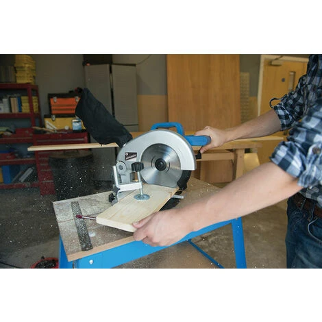 Avec dispositif de serrage, sac à poussière, stabilisateur arrière et lame haute performance.
