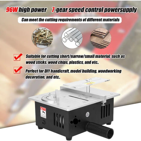 Il s’agit d’une sorte de mini scie à table multifonction, livrée avec des alimentations de contrôle de vitesse à 7 vitesses haute puissance de 96 W, peut répondre aux exigences de coupe de différents matériaux. Livré avec un tuyau de dépoussiérage permettant de le connecter à un aspirateur afin que les débris générés pendant Lame de scie HSS de 80 mm, adaptée pour couper des matériaux courts/étroits/petits, tels que des tiges de bois, des copeaux de bois, des plastiques, etc.. Parfait pour le bricolage, la construction de modèles, la décoration du travail du bois, etc. .. Vous pouvez essayer.
