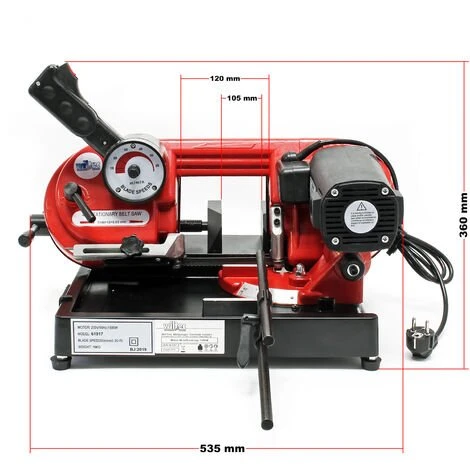 | Dimensions | Taille de l’unité : 620 x 530 x 580 mm Taille de la lame de scie : 1140 x 13 x 0,65 mm Lame de scie : 14 TPI |