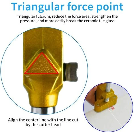 Utilisation facile : 1. Marquez le carrelage ou le verre en ligne droite. 2. Pincez le verre uniformément à la ligne de guidage marquée sur cet outil. 3. Séparez le carrelage en tournant la poignée en forme de T. Conseils : maintenez une force uniforme lors de la coupe du carrelage/verre pour assurer une fracture précise.